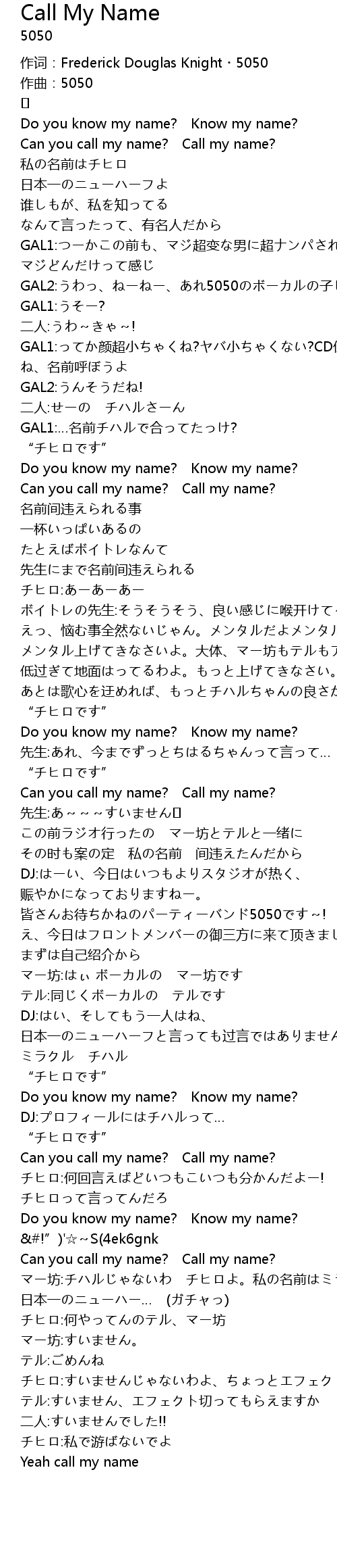 | Do you know my name? Know my name? | |