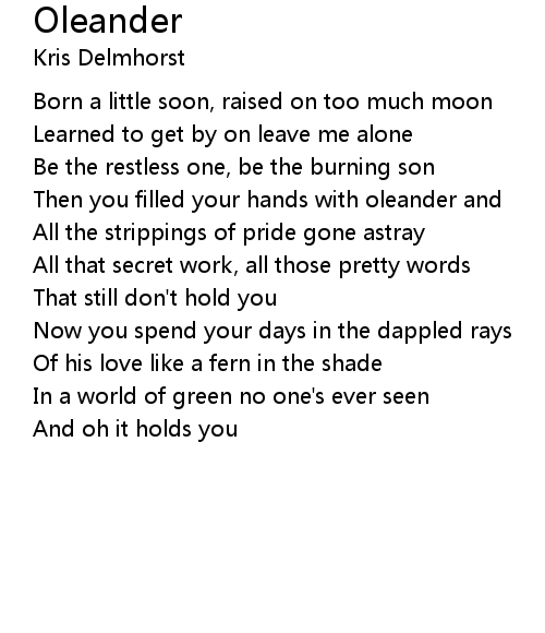 | Then you filled your hands with oleander and | |