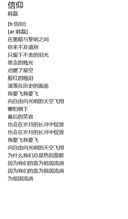 | [01:43.918] | 因为我们的血为祖国流淌 |