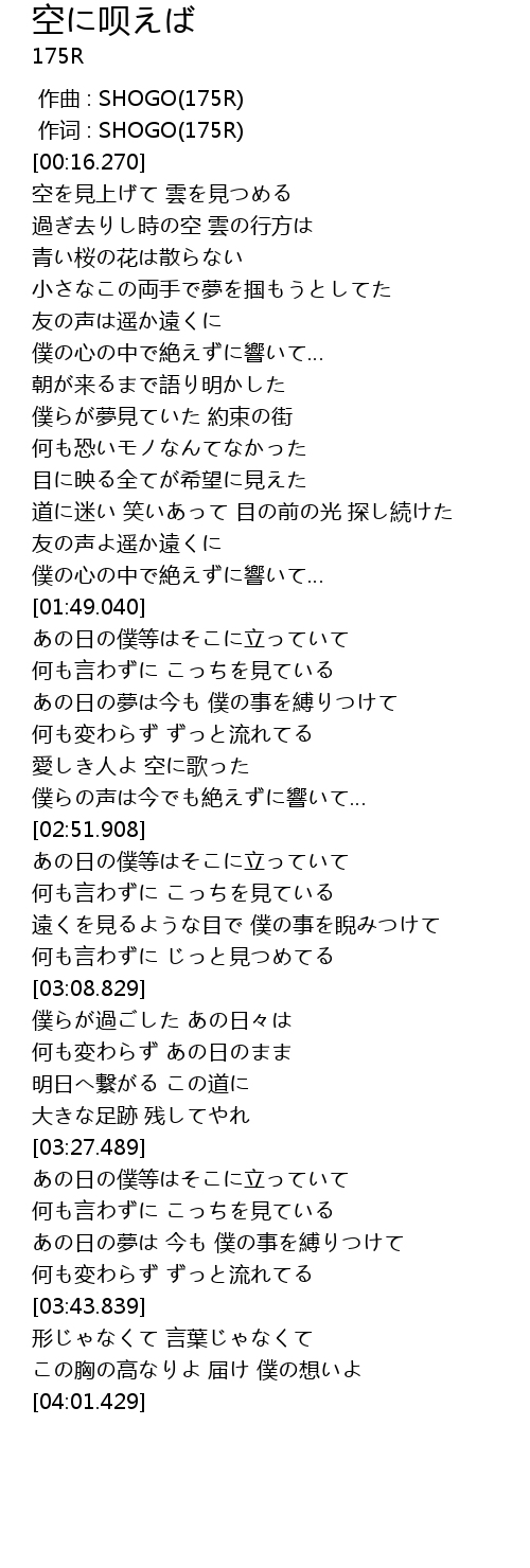 | [00:01.000] | 作词 : SHOGO(175R) |