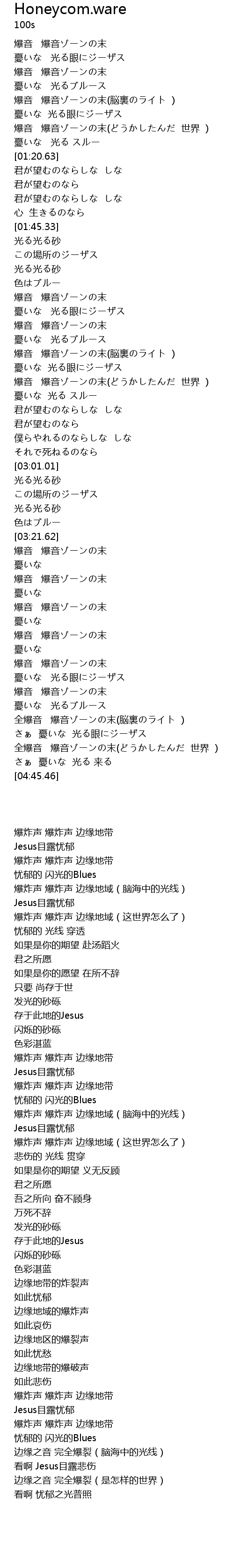 | [01:12.60] | 爆音 爆音ゾーンの末(どうかしたんだ 世界 ) |