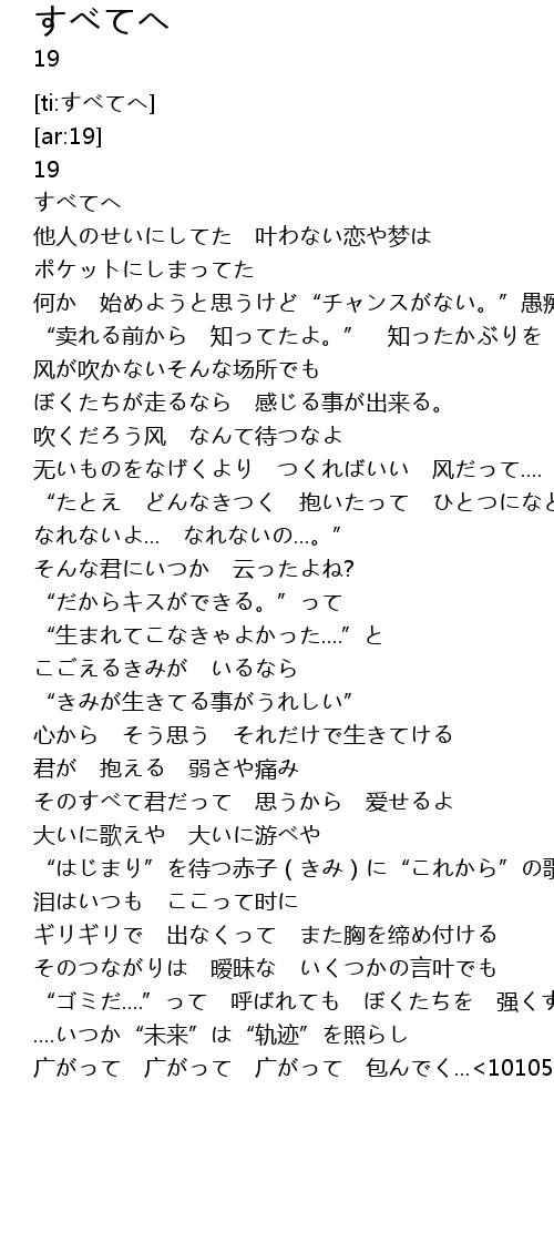 | [02:28.673] | “きみが生きてる事がうれしい” |