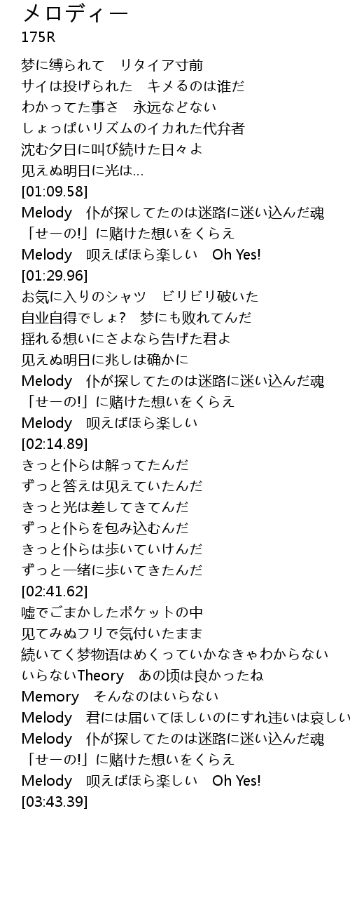 | [03:34.13] | Melody 呗えばほら楽しい Oh Yes! |