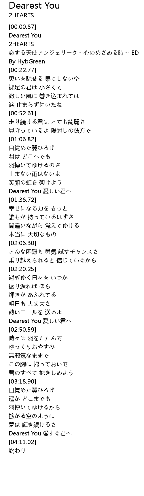| [04:05.42] | Dearest You 愛する君へ |