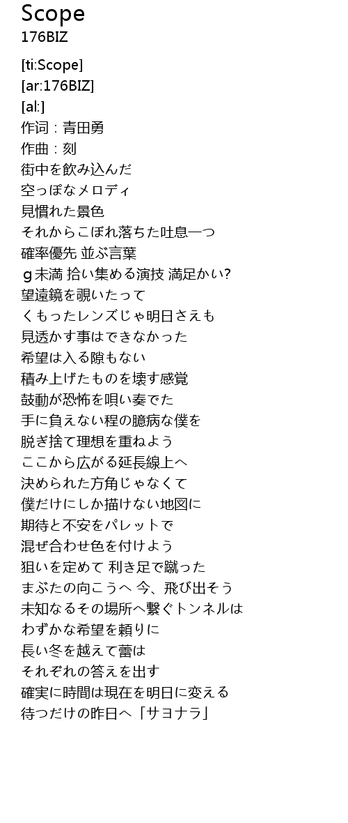 | [03:17.58] | まぶたの向こうへ 今、飛び出そう |