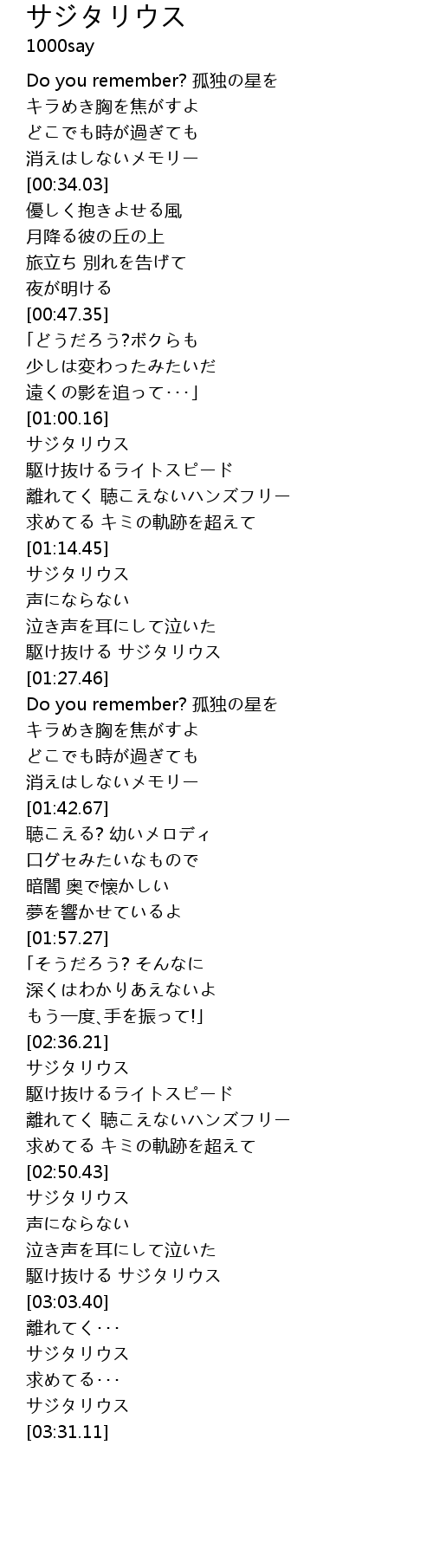| [02:58.33] | 駆け抜ける サジタリウス |