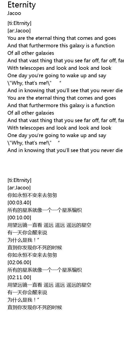 | [00:00.00] | You are the eternal thing that comes and goes |