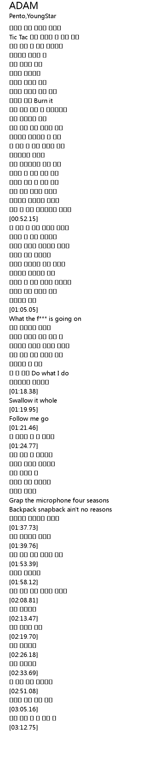 | [00:21.48] | Tic Tac 다음 악마가 날 찾기 위해 |