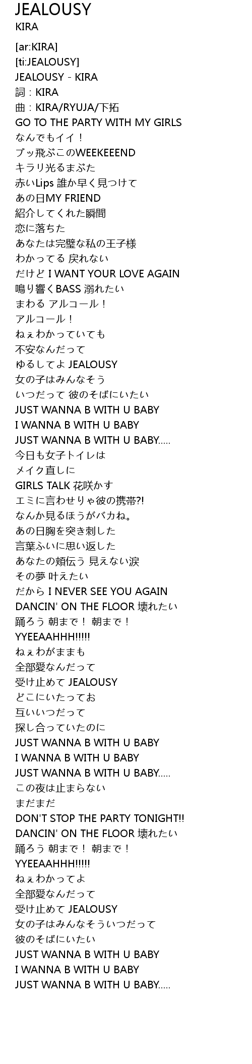 | [00:00.78] | JEALOUSY KIRA |