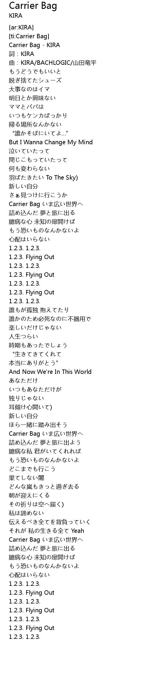 | [00:01.62] | Carrier Bag KIRA |
