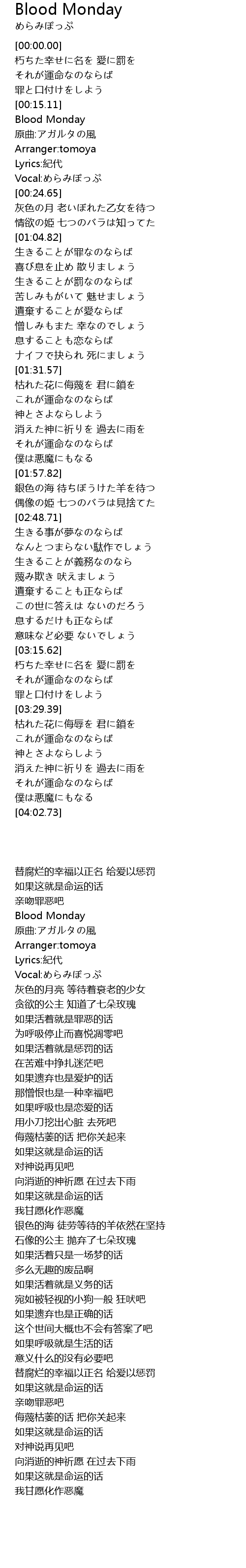 | [00:39.69] | 灰色の月 老いぼれた乙女を待つ |
