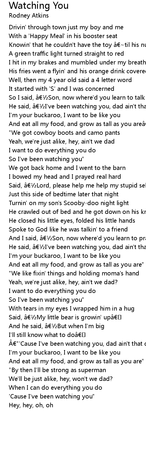 | €"'Cause I've been watching you, dad ain't that cool? | |