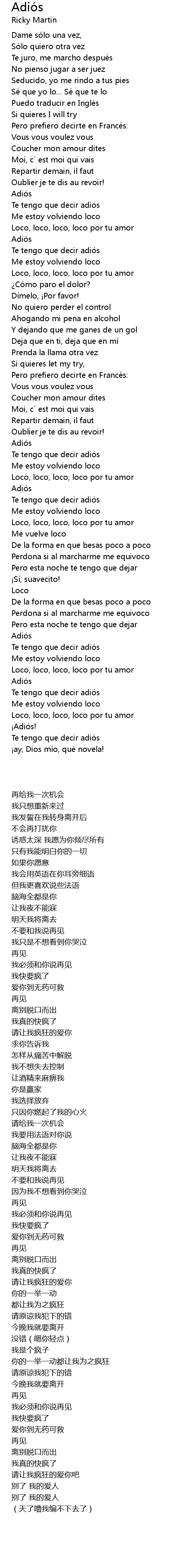 | [00:54.60] | Loco, loco, loco, loco por tu amor |