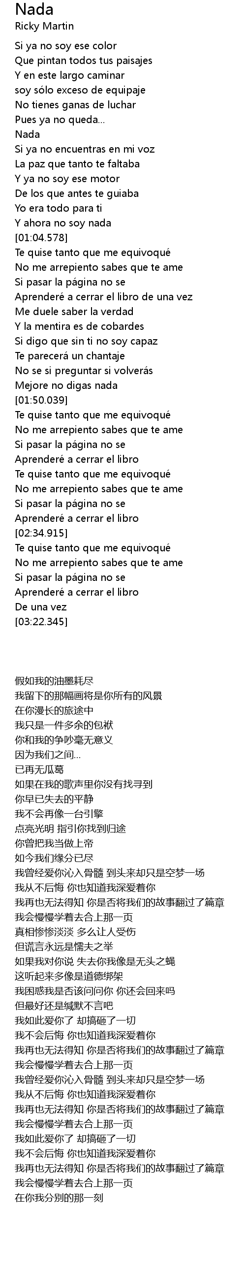 | [03:00.682] | No me arrepiento sabes que te ame |