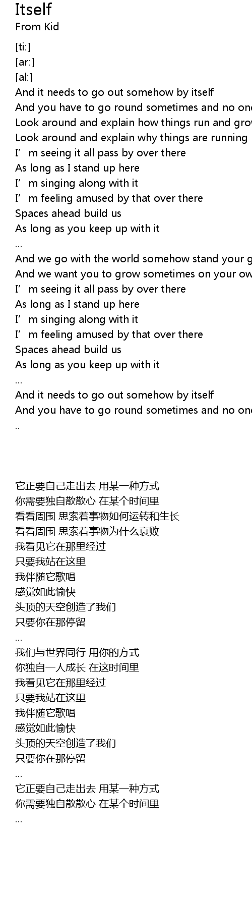 | [00:00.00] | And it needs to go out somehow by itself |