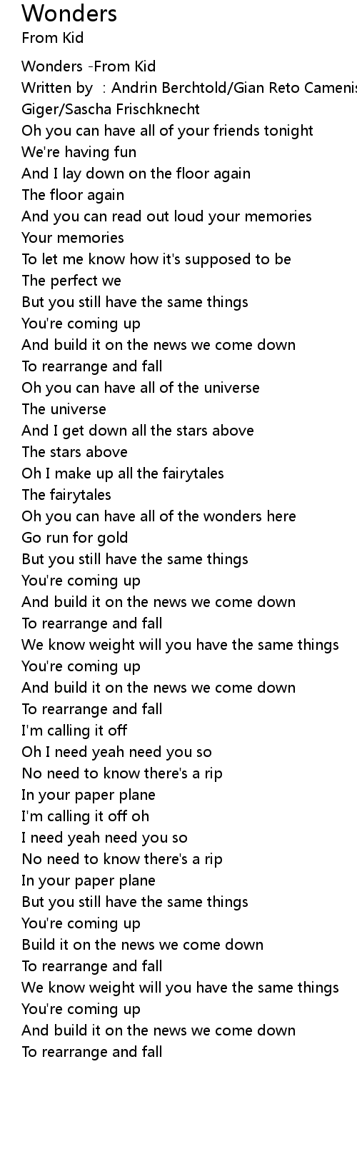 | 歌曲 | Wonders |