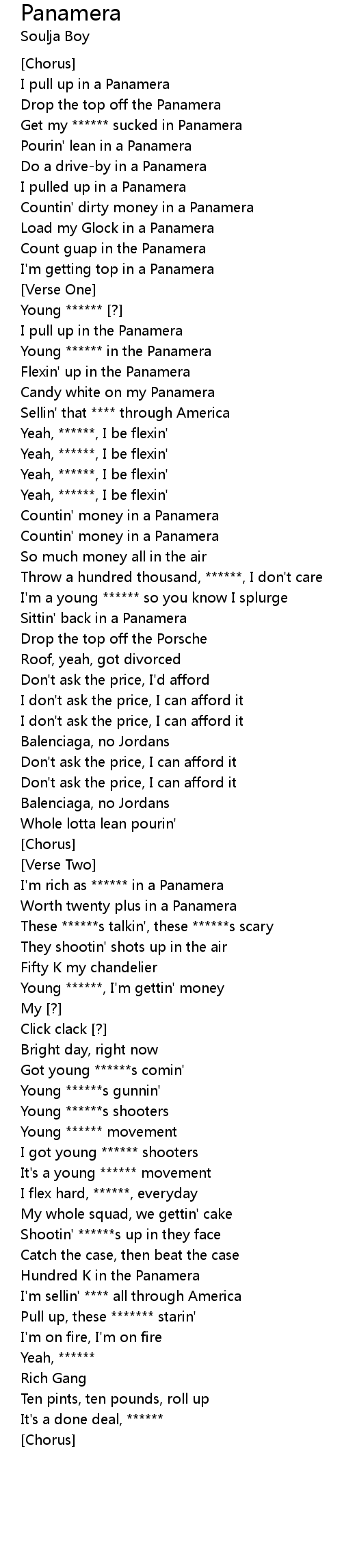 I'm rich as ****** in a Panamera |