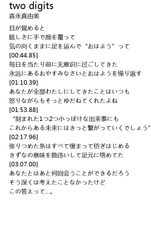 | [00:56.54] | 永远にあるおやすみなさいとおはようを缲り返す |