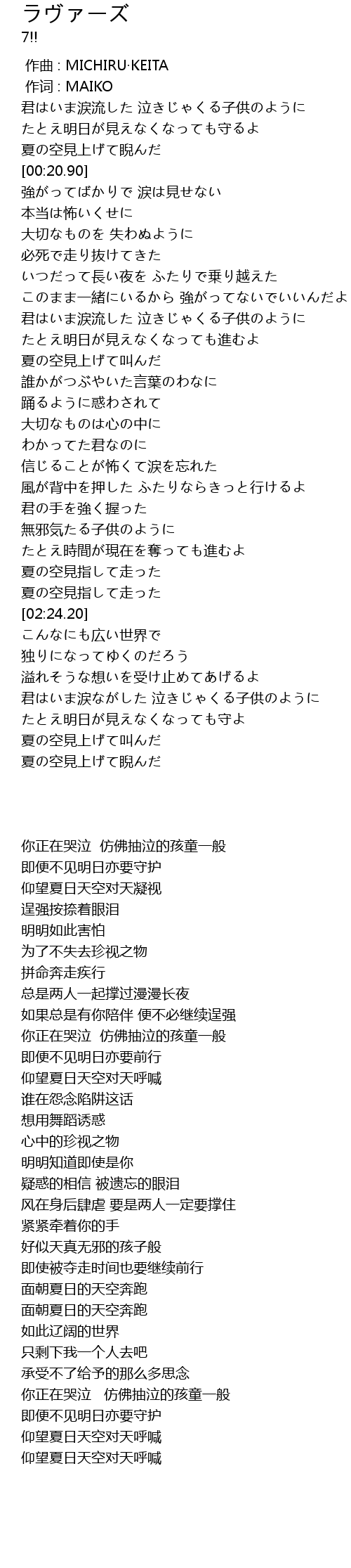 | [03:04.25] | 仰望夏日天空对天呼喊 |