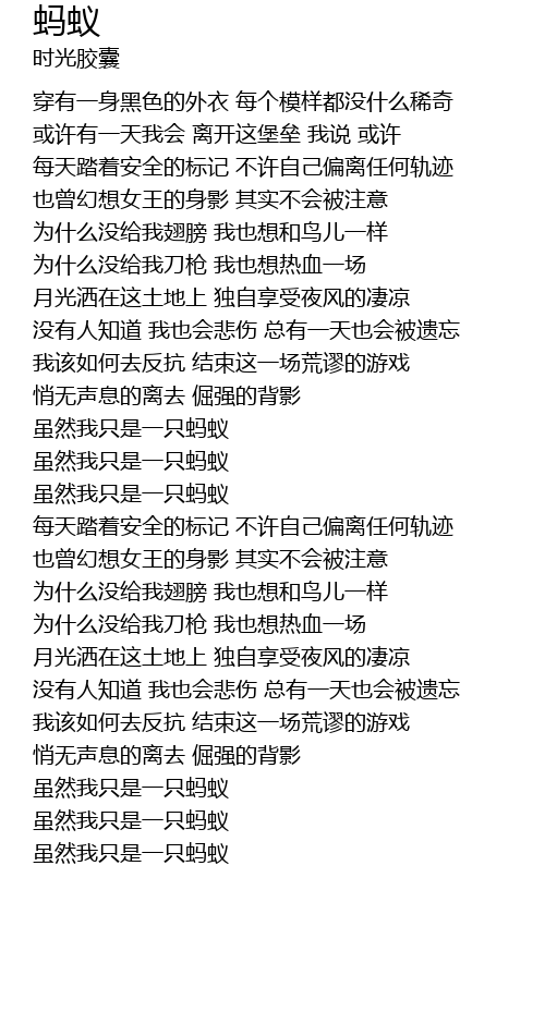 | [03:00.72] | 虽然我只是一只蚂蚁 |