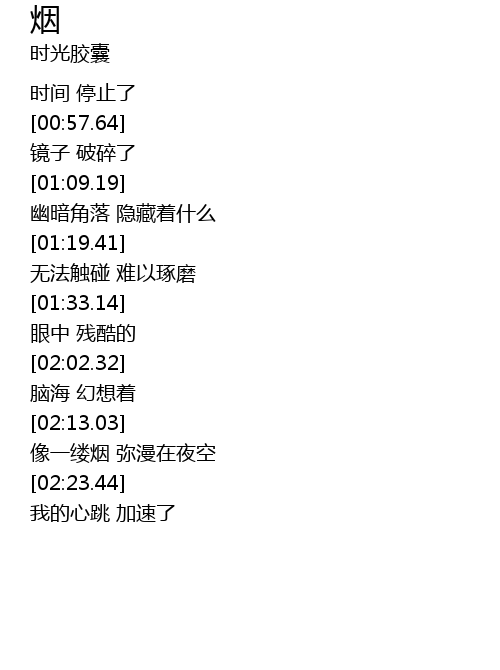 | [02:14.92] | 像一缕烟 弥漫在夜空 |