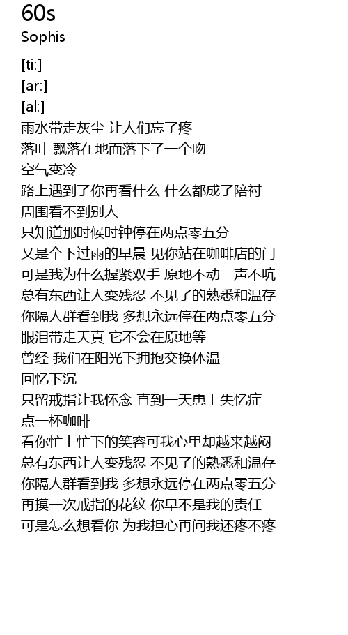 | [00:42.87] | 只知道那时候时钟停在两点零五分 |
