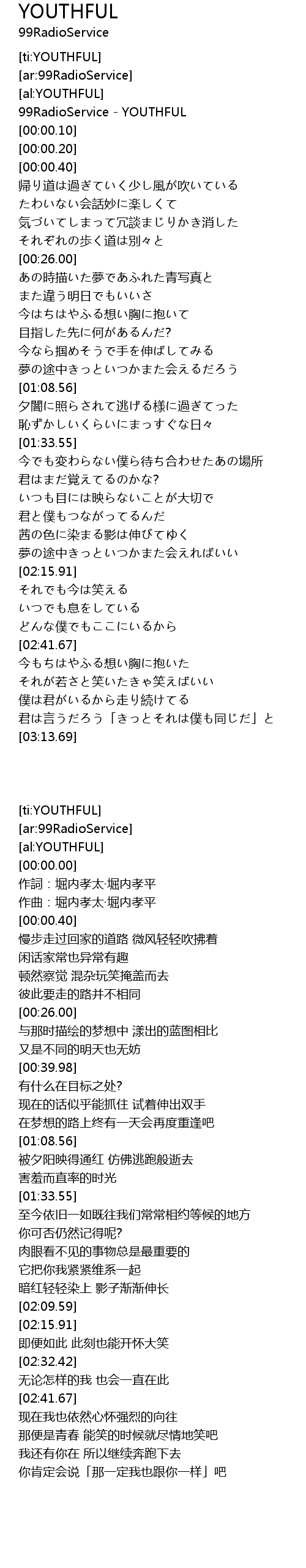 | [00:00.00] | 99RadioService YOUTHFUL |