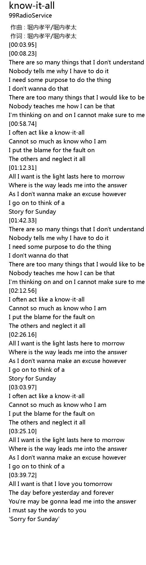 | [03:54.61] | ' Sorry for Sunday' |