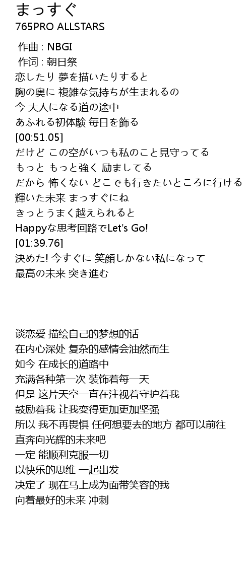 | [01:52.45] | 向着最好的未来 冲刺 |