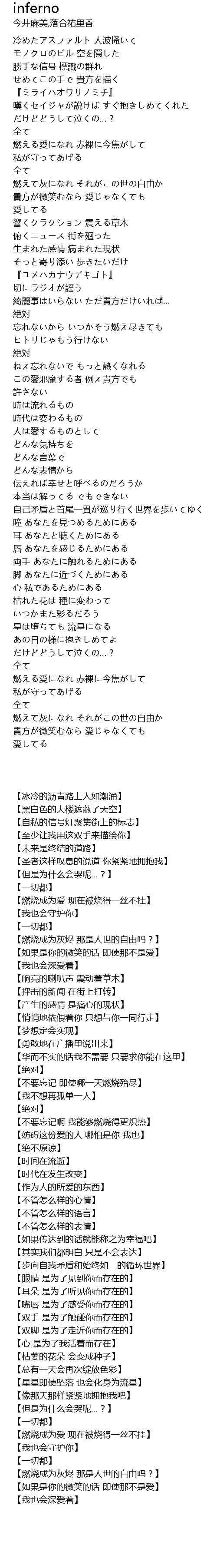 | [01:02.34] | 【燃烧成为爱 现在被烧得一丝不挂】 |