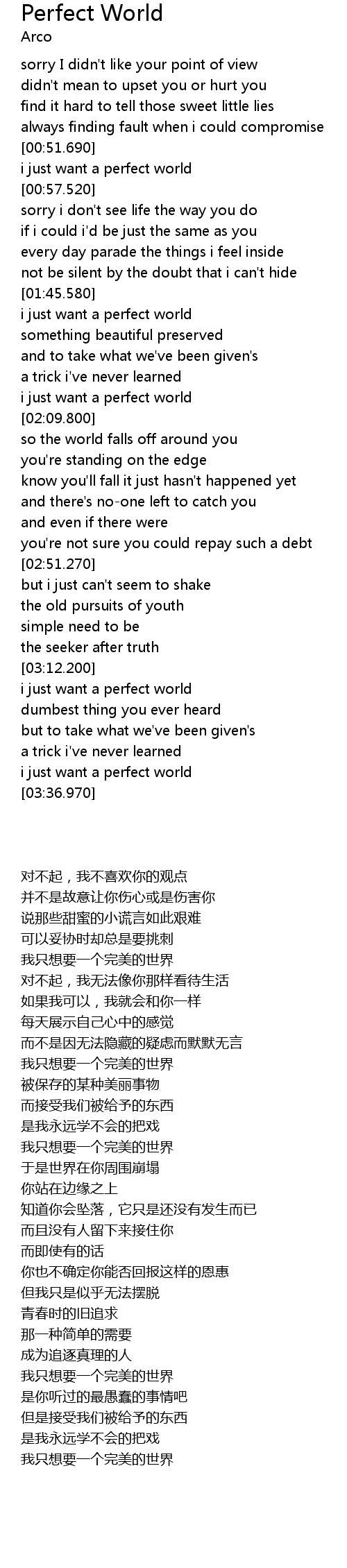 | [03:13.950] | 我只想要一个完美的世界 |