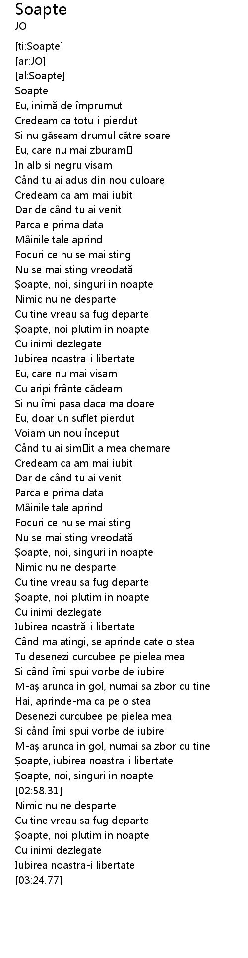 | [02:52.52] | Șoapte, iubirea noastra-i libertate |