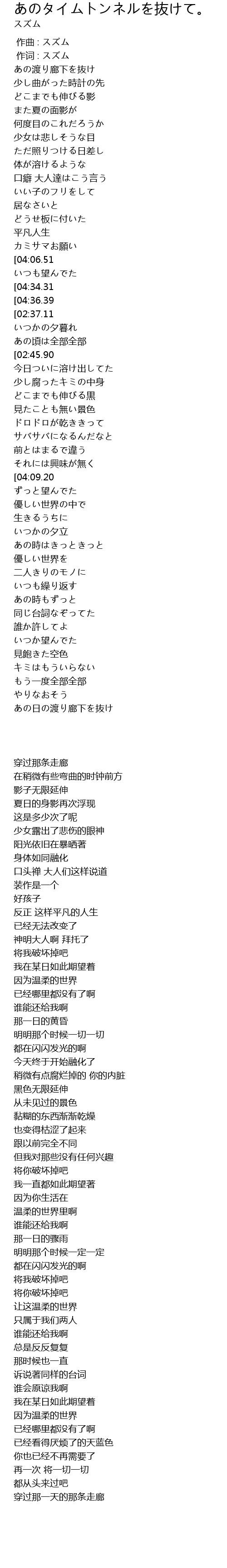 | [04:51.13] | 穿过那一天的那条走廊 |