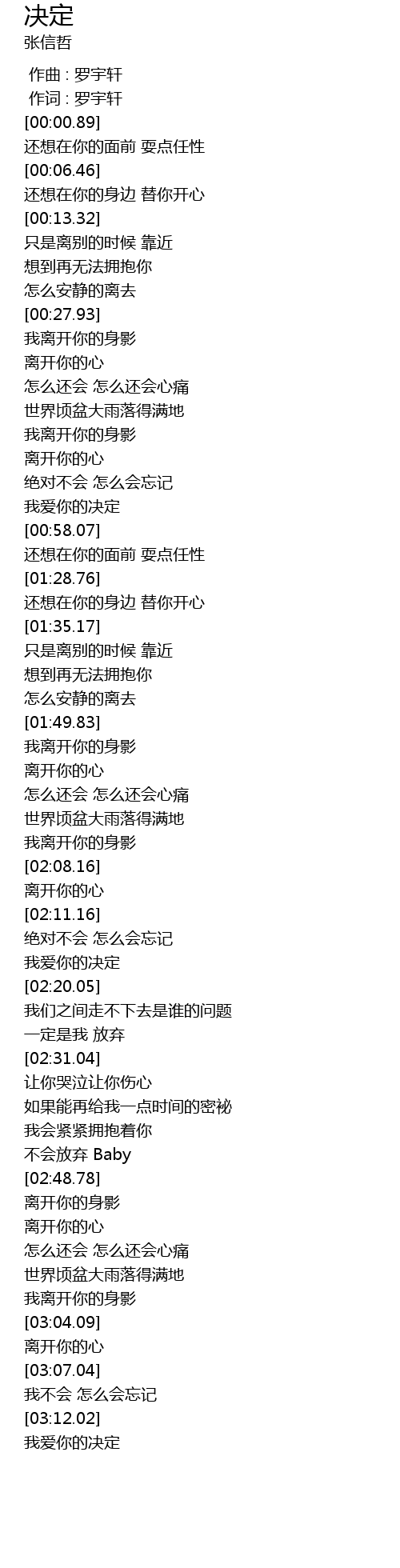 | [03:12.85] | 我爱你的决定 |