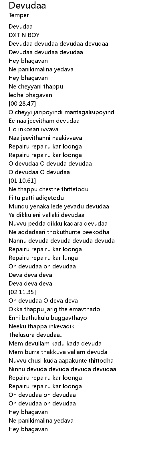 | [01:47.14] | Nannu devuda devuda devuda devuda |