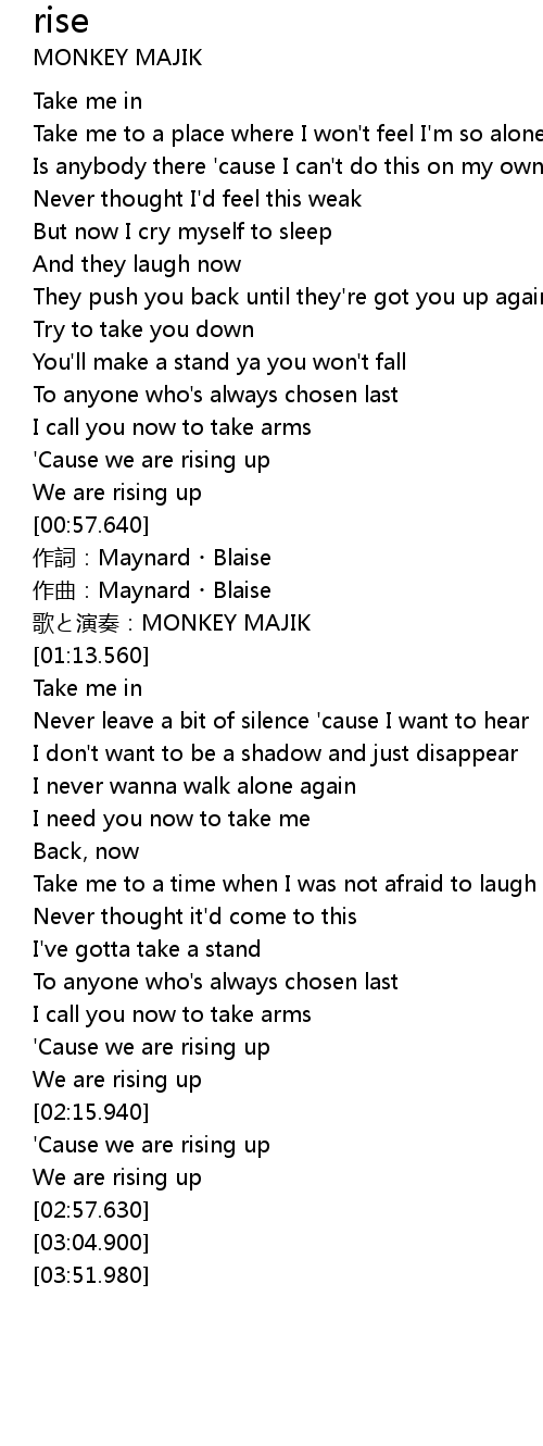 | [02:42.100] | ' Cause we are rising up |