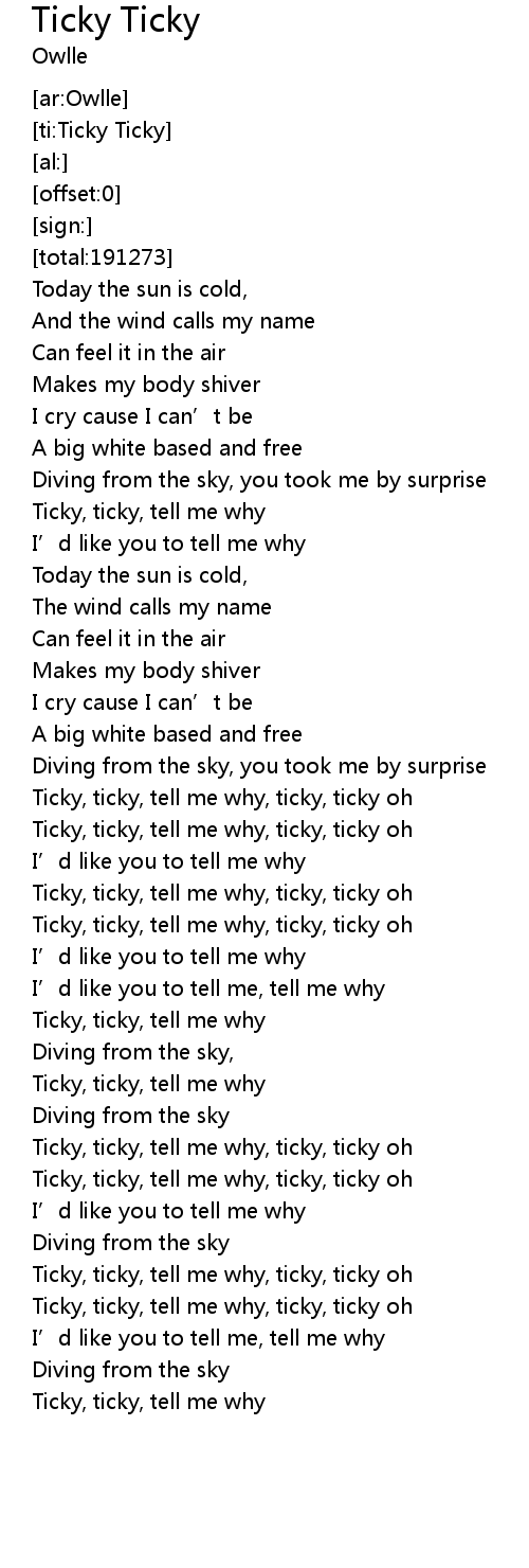 | [01:51.16] | Ticky, ticky, tell me why, ticky, ticky oh |