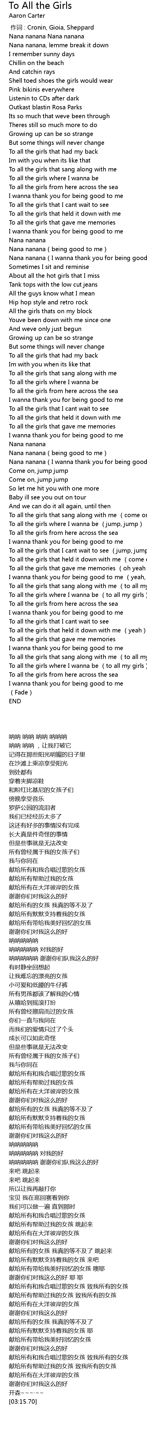 | [03:08.83] | To all the girls where I wanna be (to all my girls) |