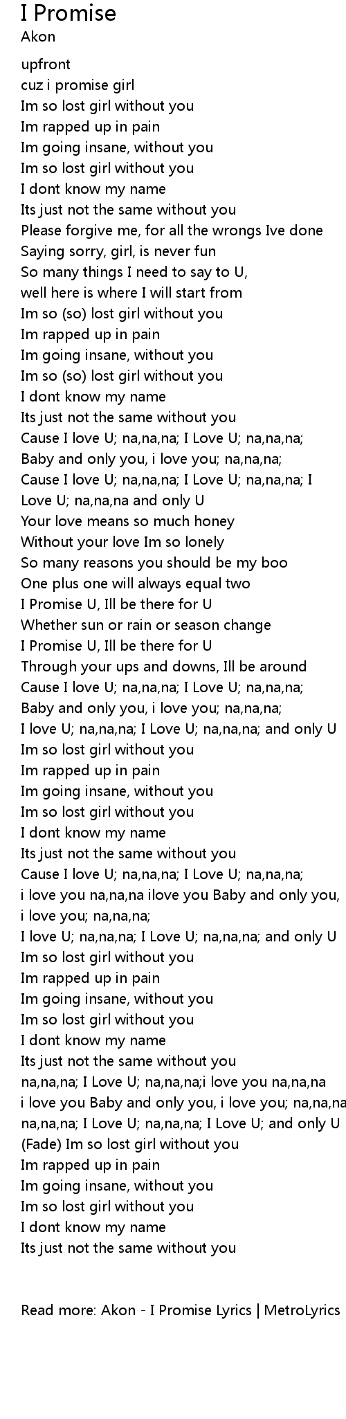 Read more: Akon - I Promise Lyrics | MetroLyrics |