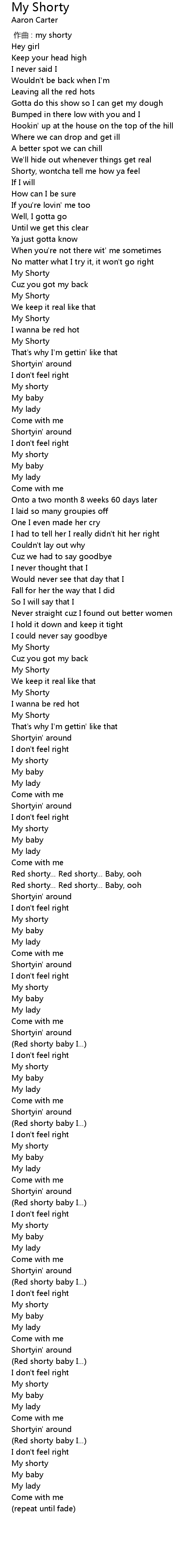| [00:00.00] | zuo qu : my shorty |