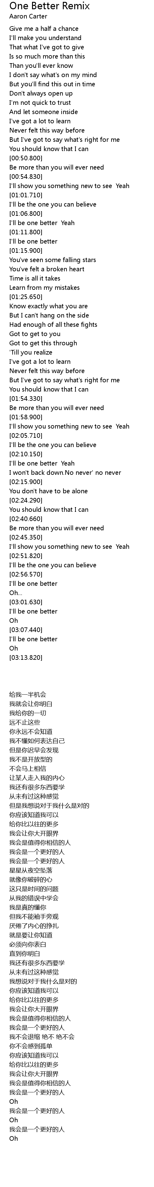 | [03:04.0] | 我会是一个更好的人 |