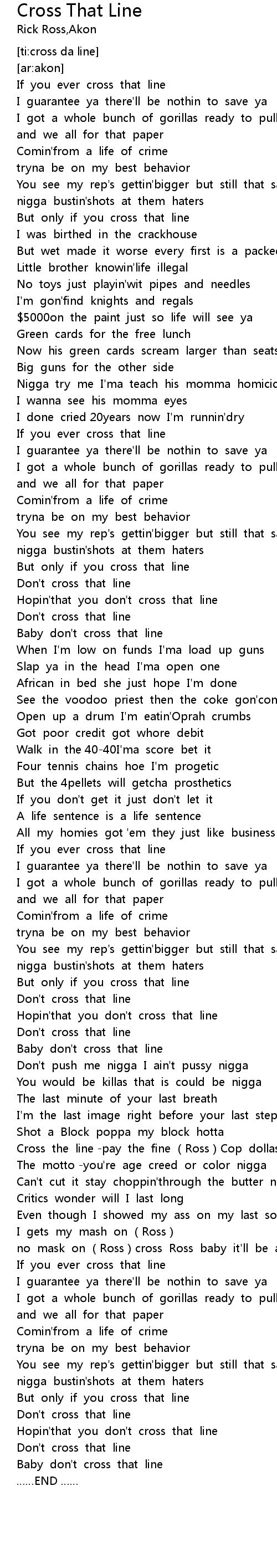 | [03:18.161] | Cross the line -pay the fine (Ross)Cop dollas |