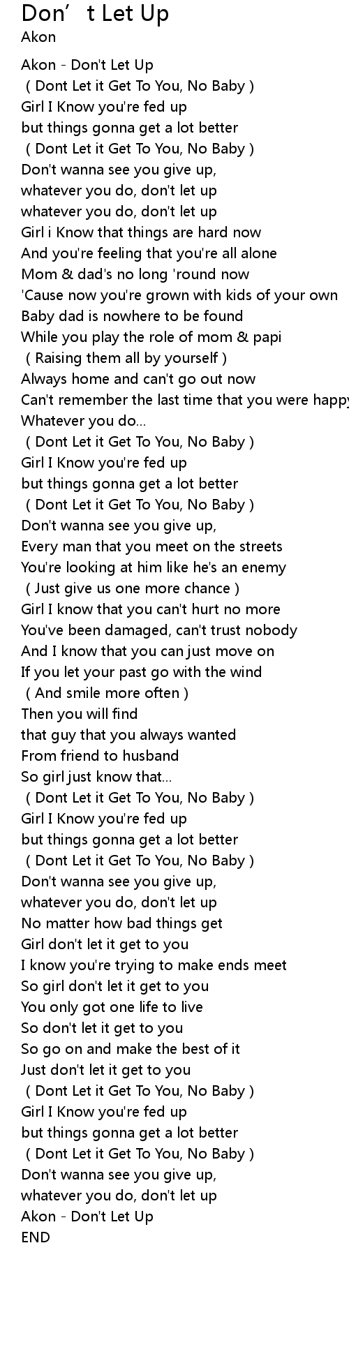 | [00:18.58] | Dont Let it Get To You, No Baby |