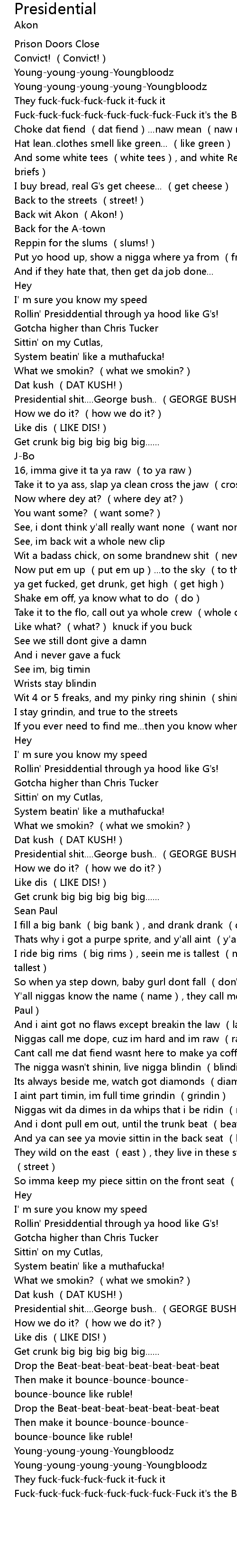 | [00:35.41] | Rollin' Presiddential through ya hood like G' s! |