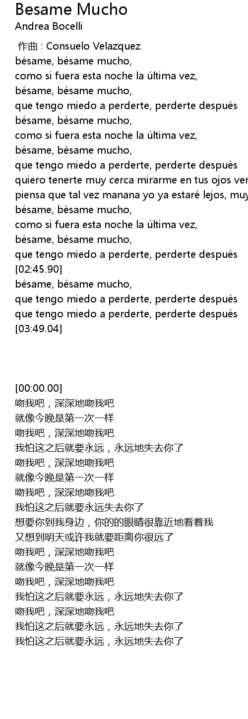 | [00:00.00] | 作曲 : Consuelo Velazquez |