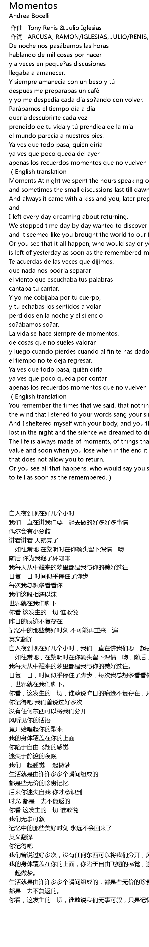 | 歌曲 | Momentos |