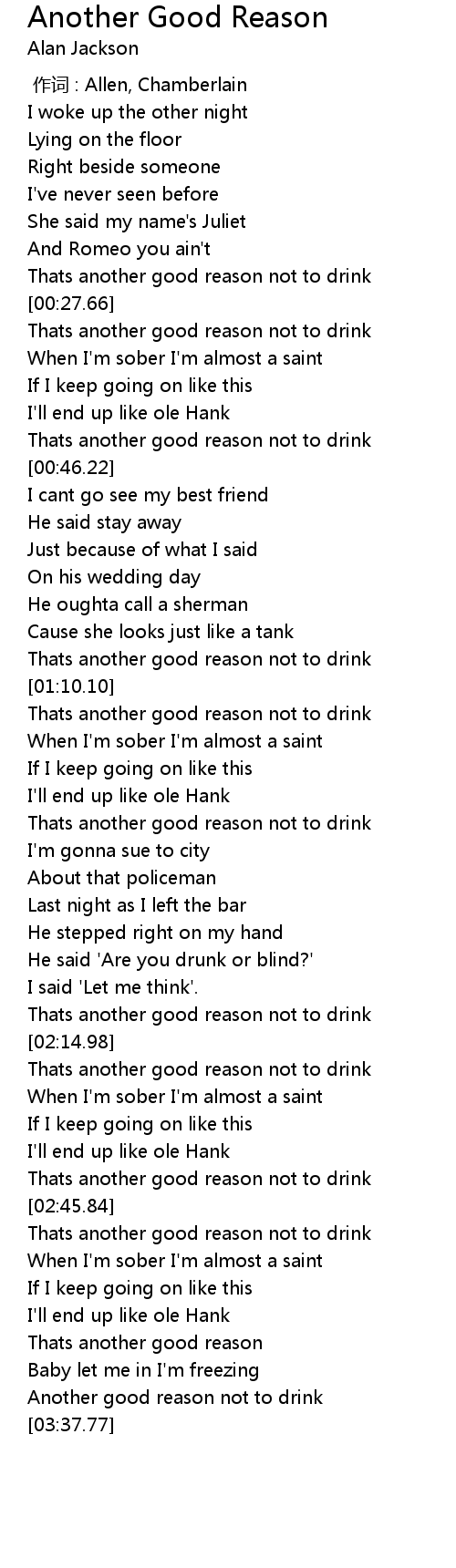 | [00:22.53] | Thats another good reason not to drink |