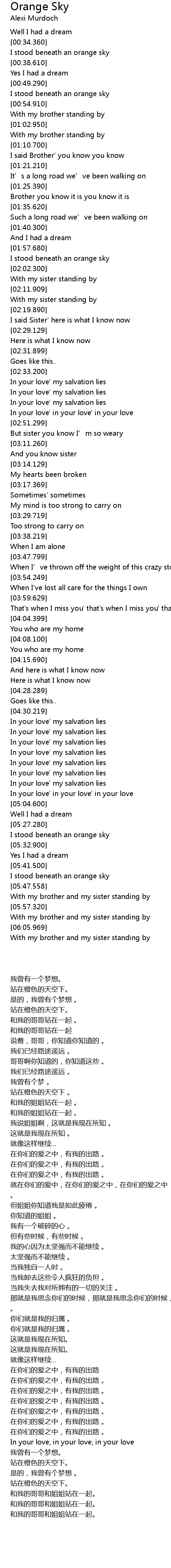 | [00:52.330] | 站在橙色的天空下。 |