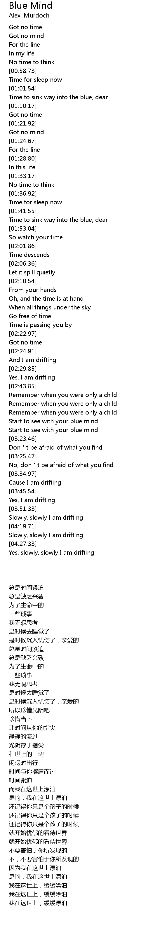 | [03:20.02] | Start to see with your blue mind |