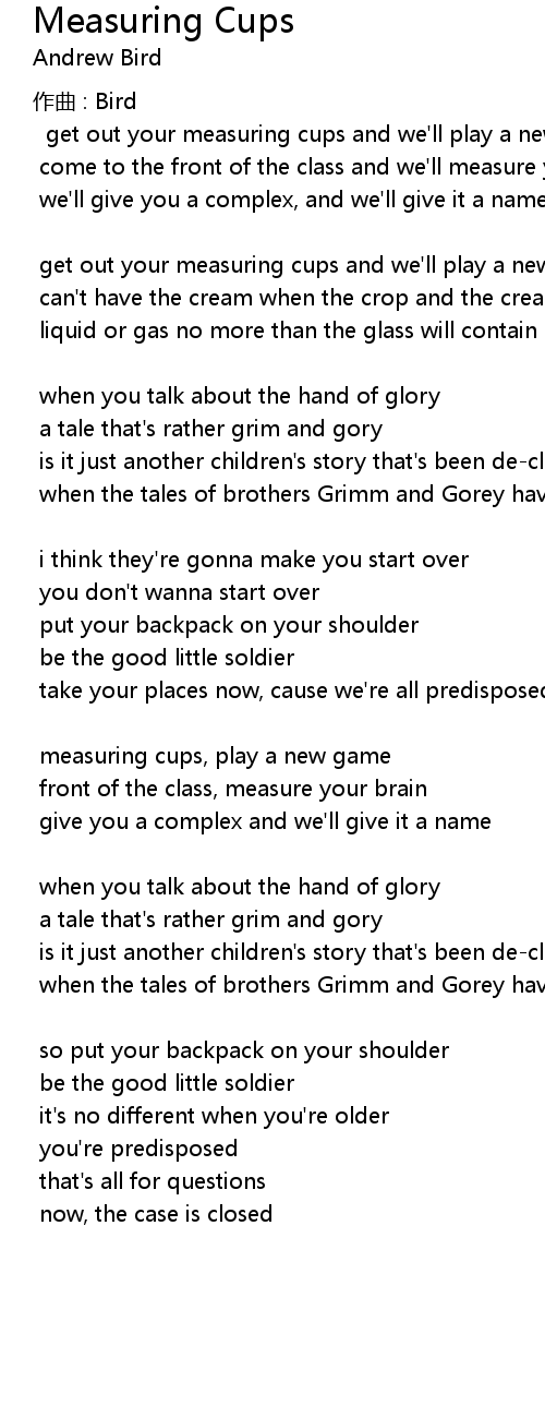 | 歌曲 | Measuring Cups |